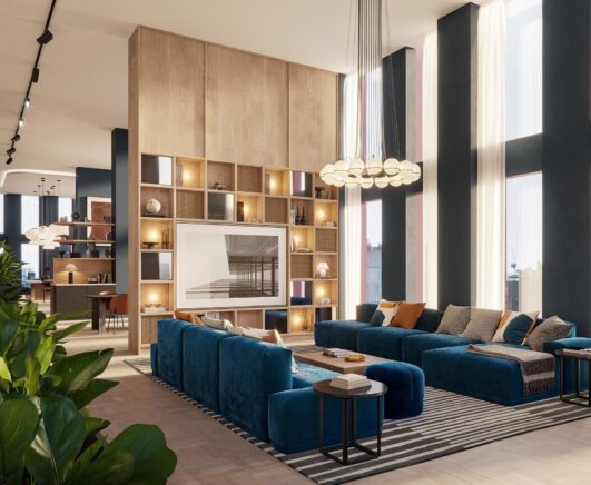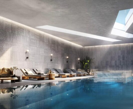 One Port Street Manchester is a landmark 33-storey residential development delivering 477 luxury one-, two- and three-bed apartments in the heart of the Northern Quarter. Designed by SimpsonHaugh and forming part of the developer’s Prestige Collection, the building offers hotel-style amenities including a 2,000 sq ft swimming and spa pool, a resident gym, rooftop terrace, and a grand lobby featuring a 360° fire-pit.